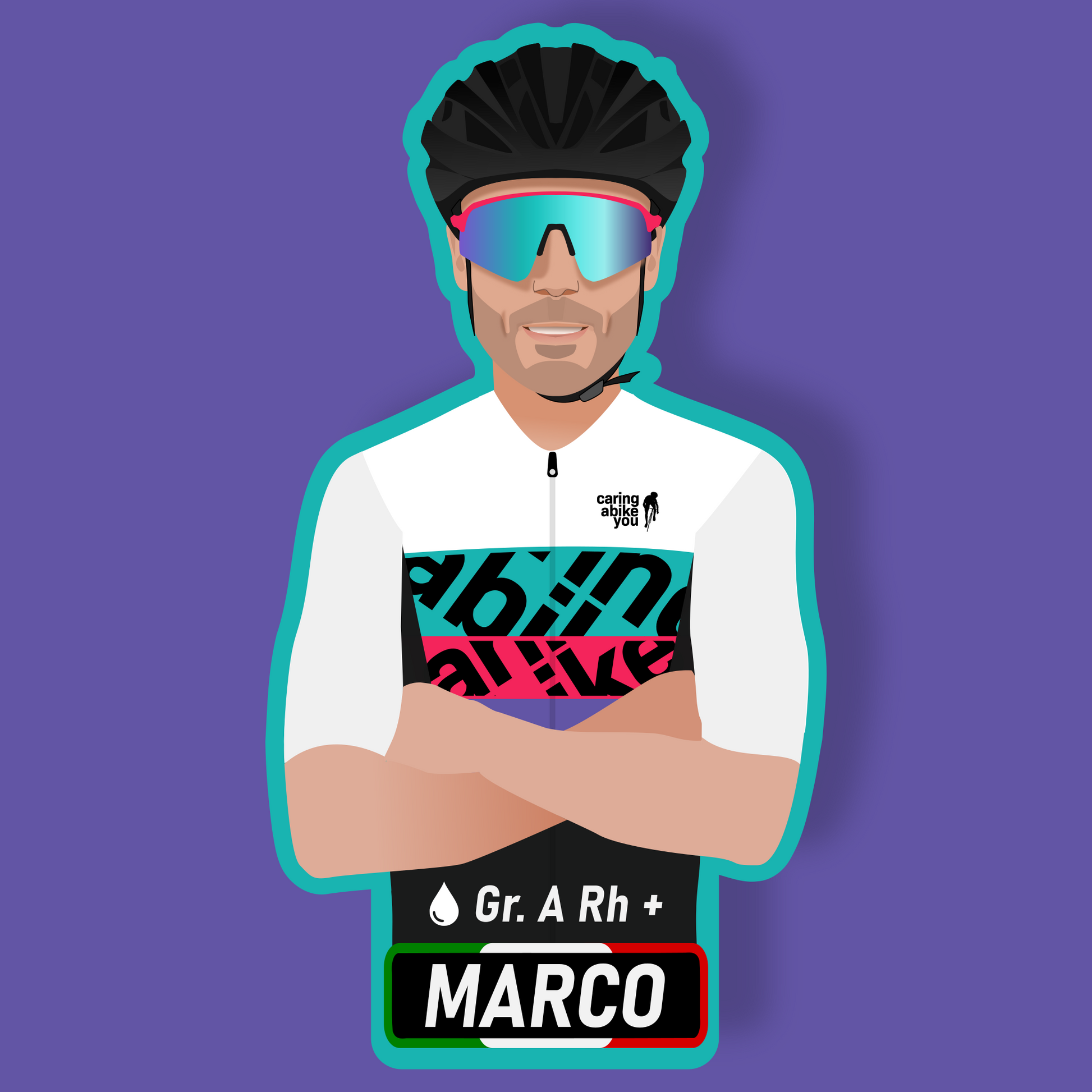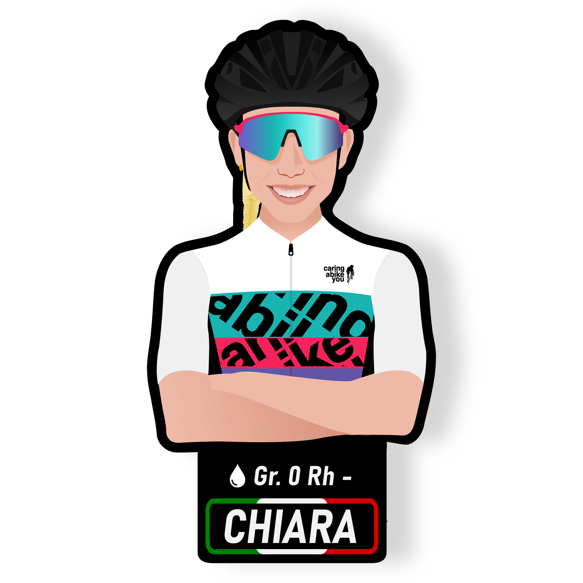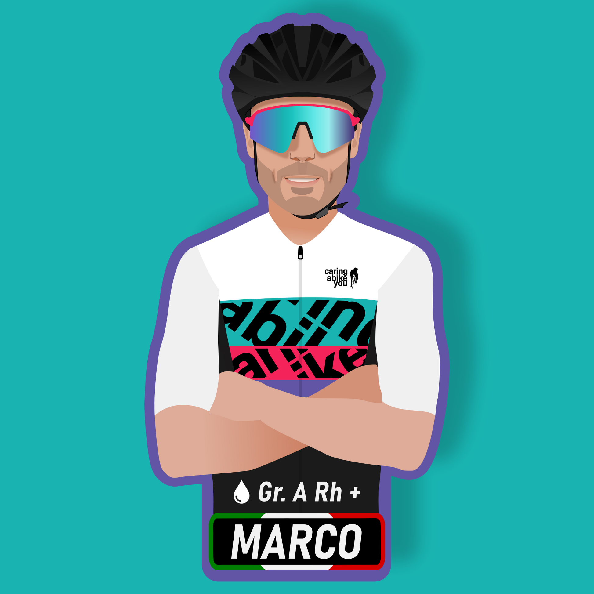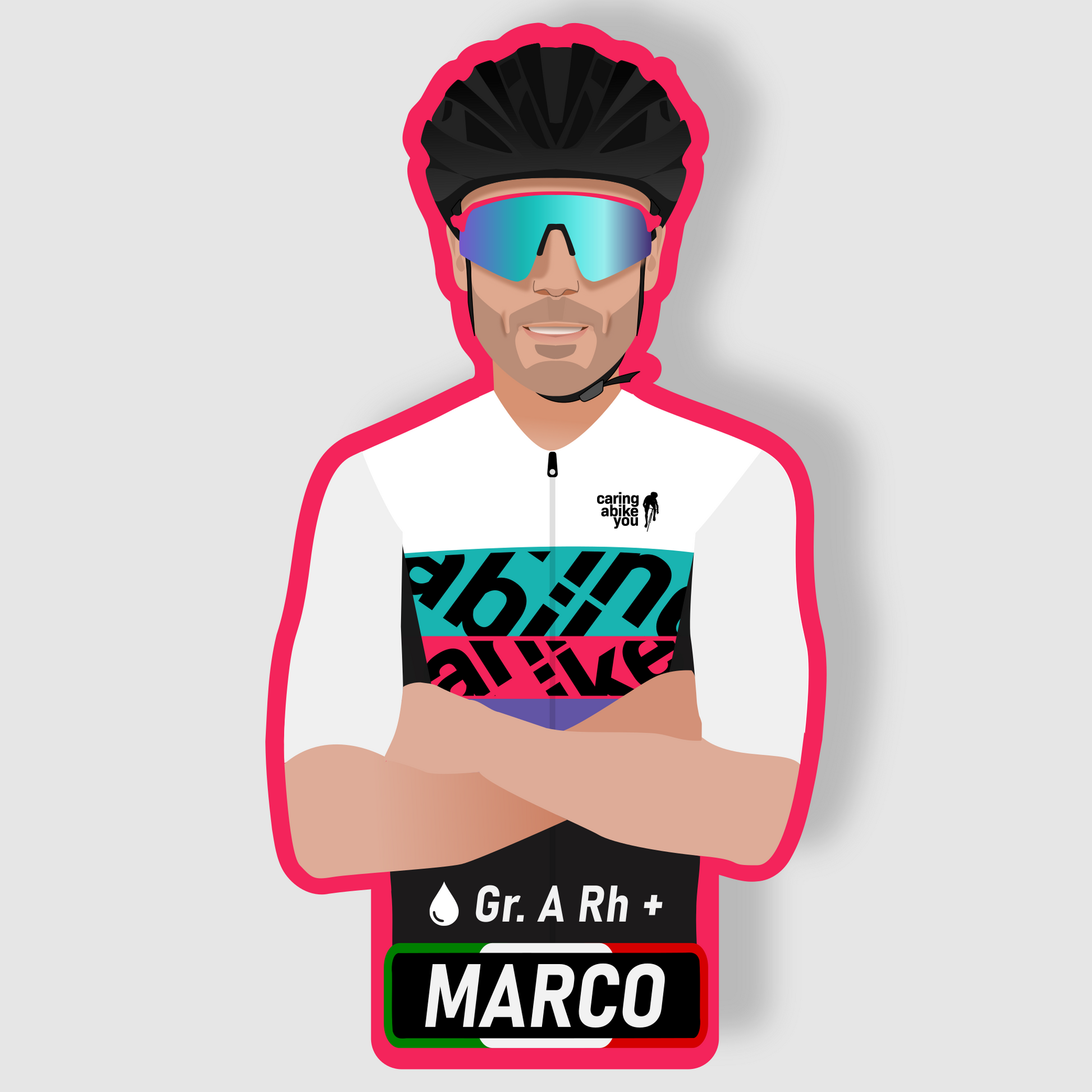 Dalla tua foto, con il tuo casco ed occhiali, ti disegneremo con la nostra mitica maglia "La Otto" e realizzeremo gli adesivi che potrai applicare a qualunque cosa vorrai per personalizzarla in modo unico!