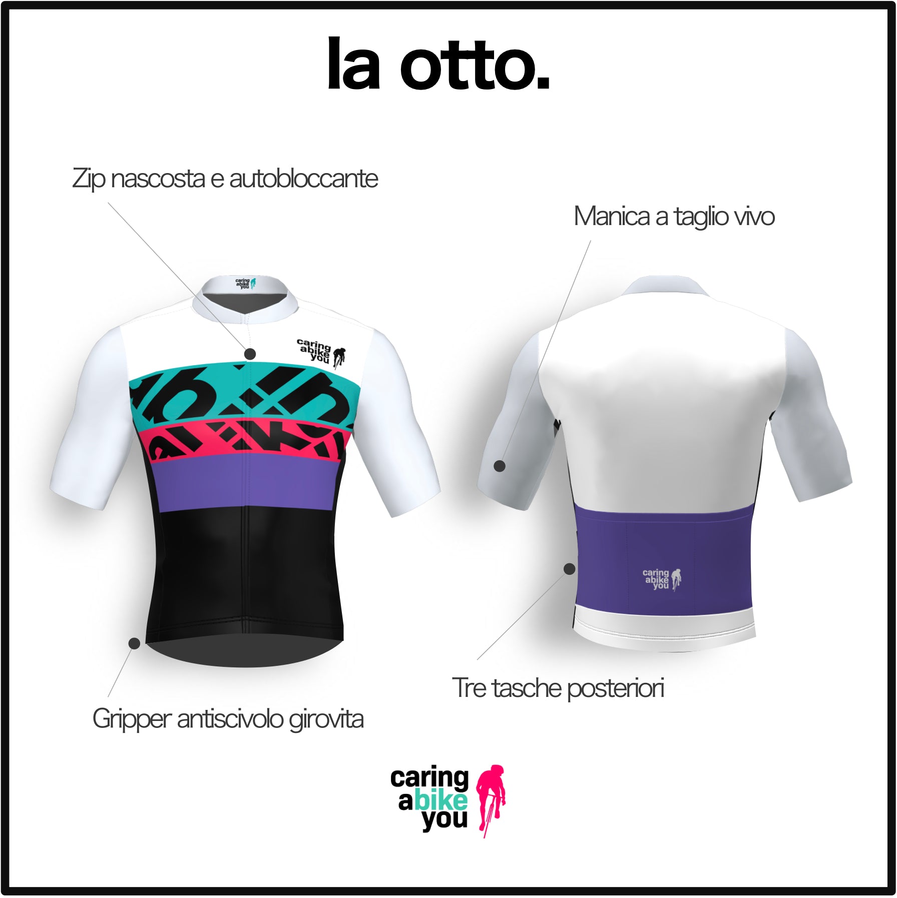 “La otto” è la prima iconica maglia firmata Caring abike you, disegnata, prodotta e confezionata in Italia!